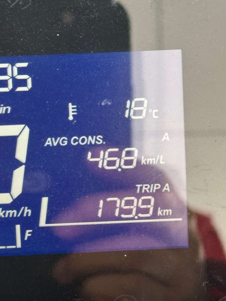 本日の走行距離179.9km、平均燃費46.8km/Lでした。